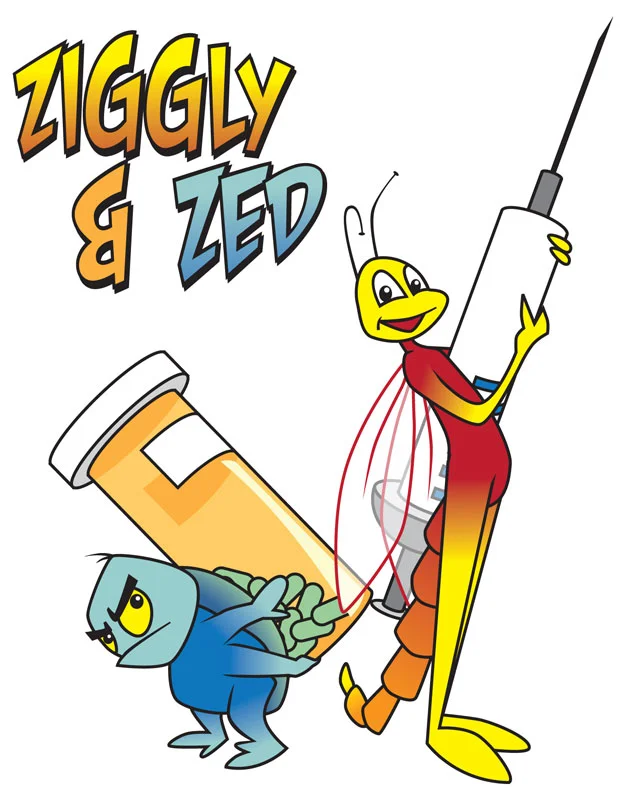 Meet Ziggly & Zed: the characters we will use to educate children about proper needle and medication disposal.