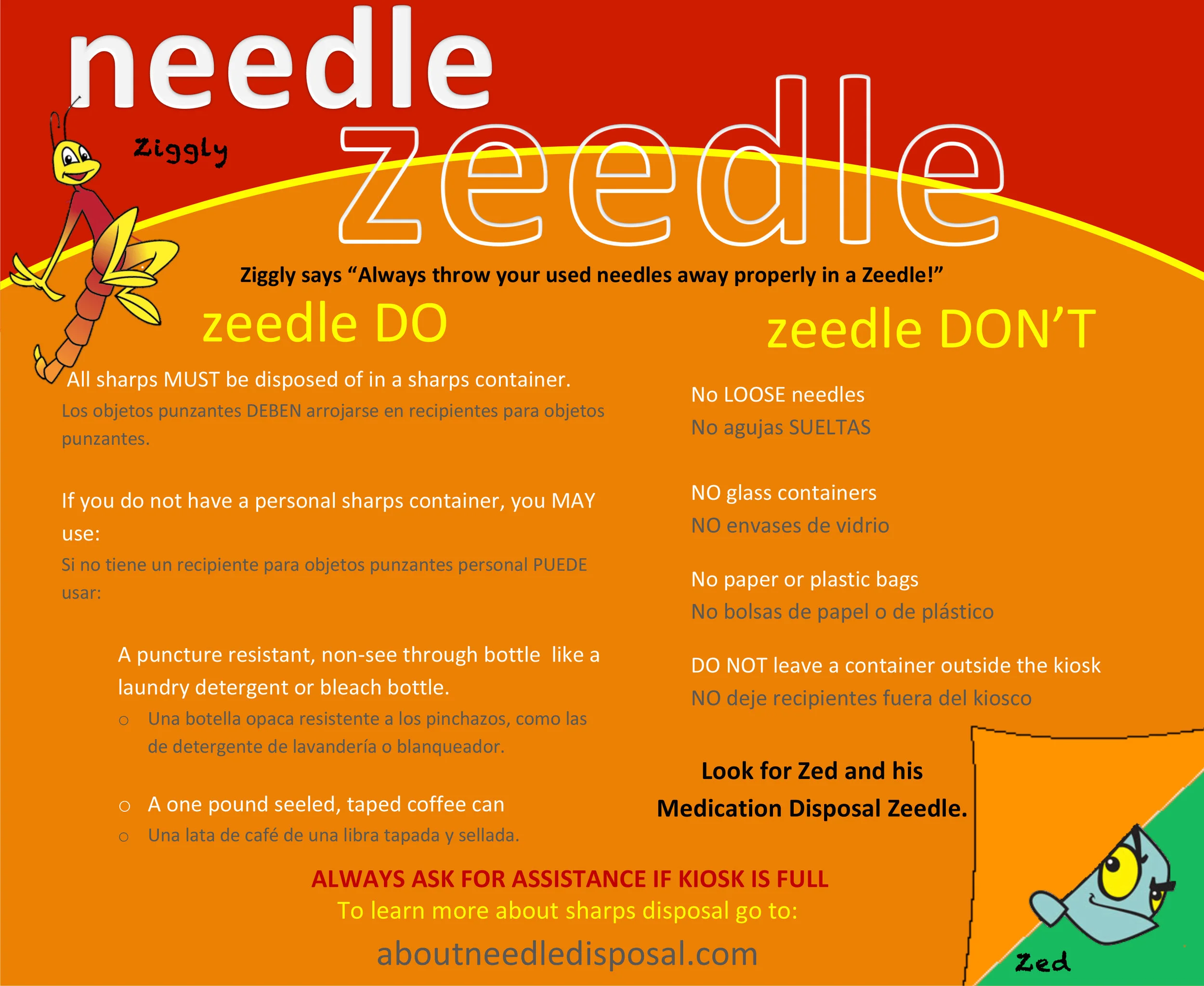 Zeedles are for sharps containers only. Never drop a single needle into a Zeedle. This is a hazard for the waste haulers who pick up the waste.