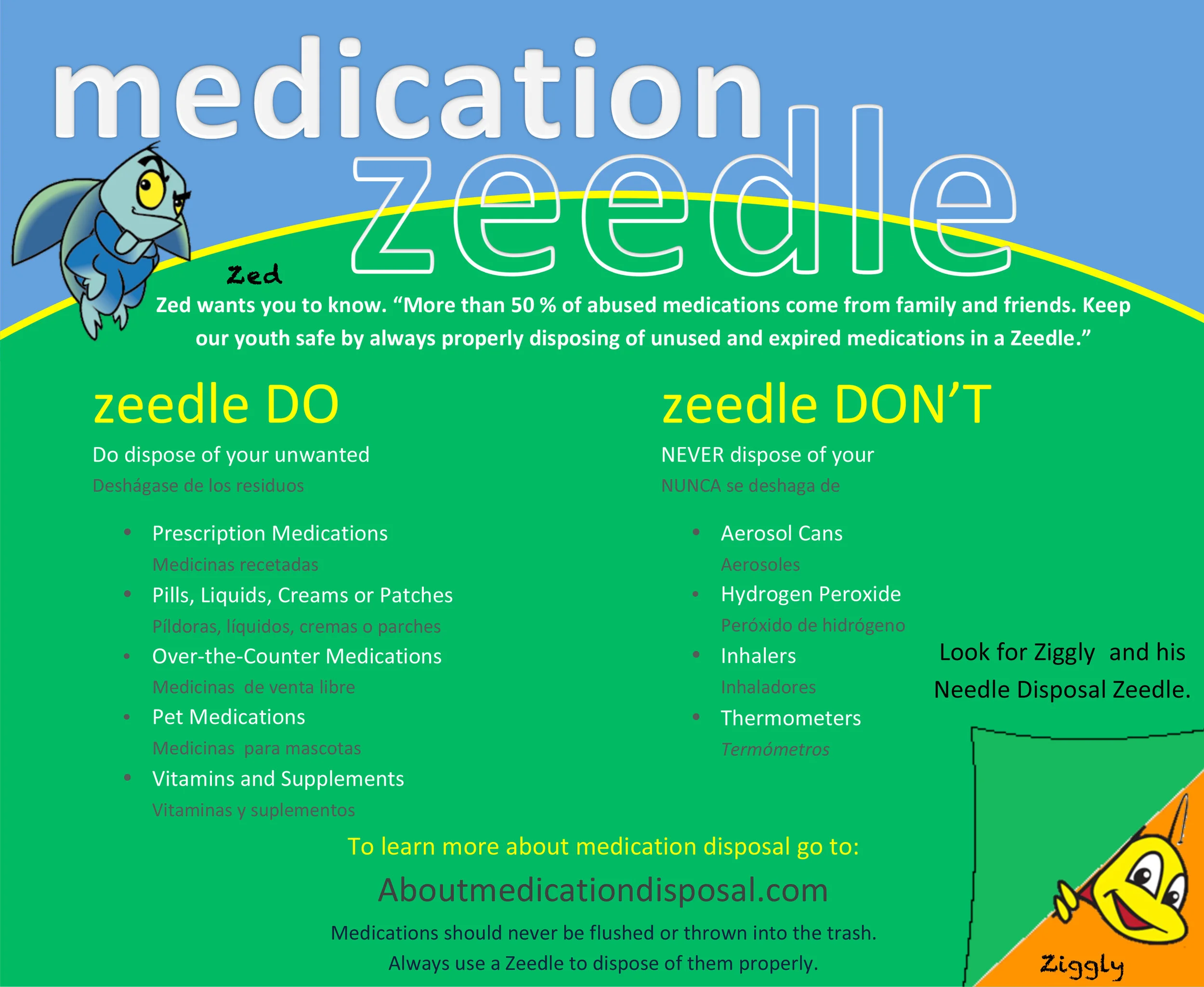 MEDICATIONS SHOULD NEVER BE PLACED IN A SHARPS CONTAINER OR A SHARPS COLLECTION ZEEDLE. THERE ARE MEDICATION COLLECTION ZEEDLES WHERE MEDICATIONS ARE ACCEPTED.